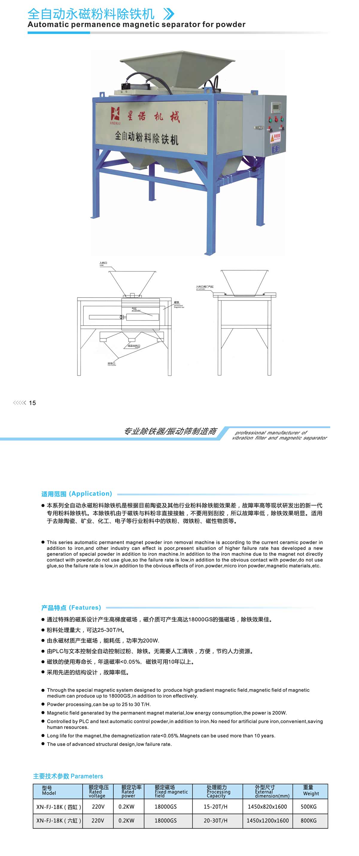 This series automatic permanent magnet powder iron removal machine is according to the current ceramic powder in addition to iron,and other industry can effect is poor,present situation of higher failure rate has developed a new generation of special powder in addition to iron machine.In addition to the iron machine due to the magnet not directly contact with powder,do not use glue,so the failure rate is low,in addition to the obvious contact with powder,do not use glue,so the failure rate is low,in addition to the obvious effects of iron.powder,micro iron powder,magnetic materials,etc.